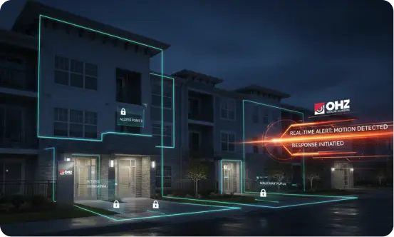 OHZ integrates with your existing cameras or installs new surveillance to monitor entrances, parking lots, stairwells, and shared spaces—protecting residents, vehicles, and your property’s reputation.