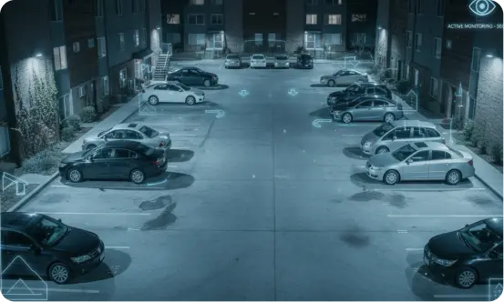 Parking areas are high-value targets for theft, vandalism, and even arson. Our surveillance covers every vehicle and space, day and night. Guards issue live commands to trespassers and escalate to police if needed, disrupting crimes in motion. Residents park with confidence, and managers reduce costly claims.